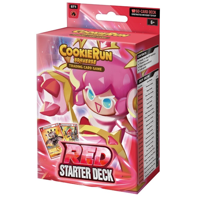 The worldwide CookieRun fandom hits the tabletop.Each starter pack contains 60 cards, with multiple copies of certain cards that are ready for battle.In this 2-player game, players use a 60-cards deck composed of Cookie cards, Item cards, Trap cards and St