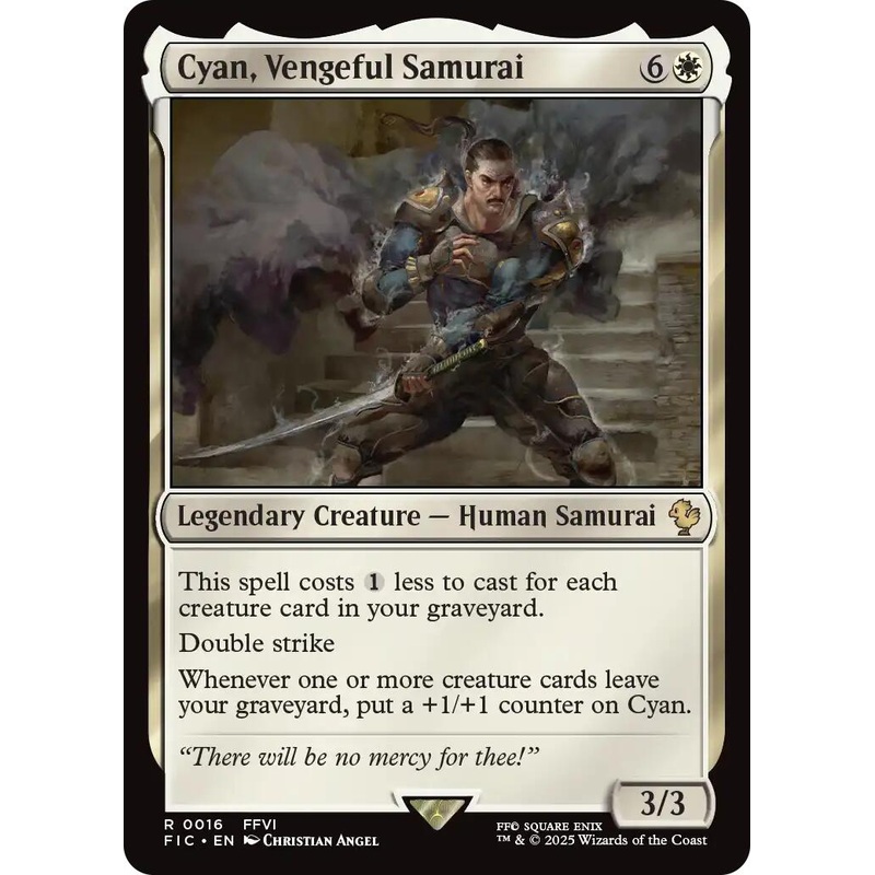 Set: FINAL FANTASY Commander Type: Legendary Creature Human Samurai Rarity: Rare Cost: {6}{W} This spell costs 1 less to cast for each creature card in your graveyard.Double strikeWhenever one or more creature cards leave your graveyard, put a +1/+1 coutne