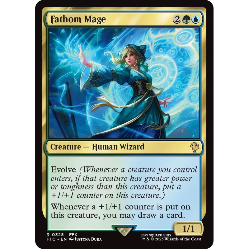 Set: FINAL FANTASY Commander Type: Creature Human Wizard Rarity: Rare Cost: {2}{G}{U} Evolve (Whenever a creature you control enters, if that creature has greater power or toughness than this creature, put a +1/+1 counter on this creature.)Whenever a +1/+1