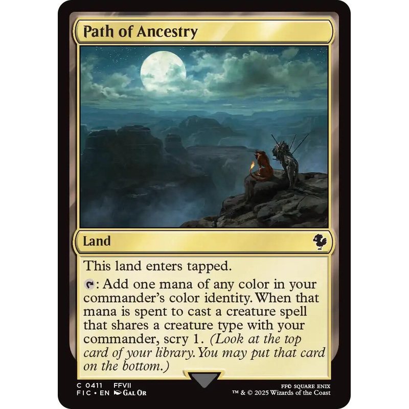 Set: FINAL FANTASY Commander Type: Land Rarity: Common This land enters tapped.{T}: Add one mana of any color in your commander's color identity. When that mana is spent to cast a creature spell that shares a creature type with your commander, scry 1. (Loo